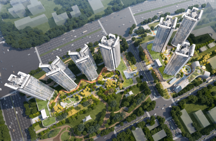 项目位于地铁18、22号线交汇的白云城市中心站地铁上盖,规划7栋32-33层住宅。