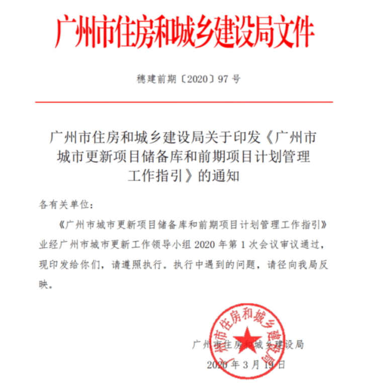 近日,广州住建局依申请公开了《广州市城市更新项目储备库管理工作指引》(下称《指引》)。