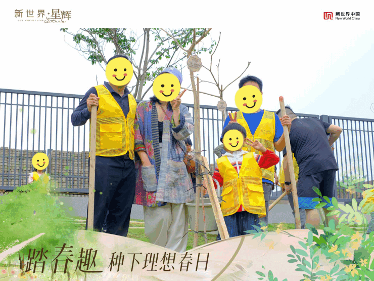就在刚刚过去的3月,新世界星辉举办了“踏春趣 种下理想春日”植树活动。于社区楼下的雅瑶河畔,业主们种下了一行行翠绿的树苗,它们象征着新生与活力。如同所有人汇聚在星辉的怀抱,携手共进,一同见证社区的蜕变与温情,共同构筑起一个充满生机与情感的理想栖居地。