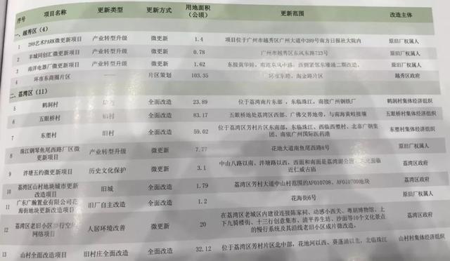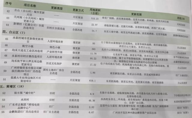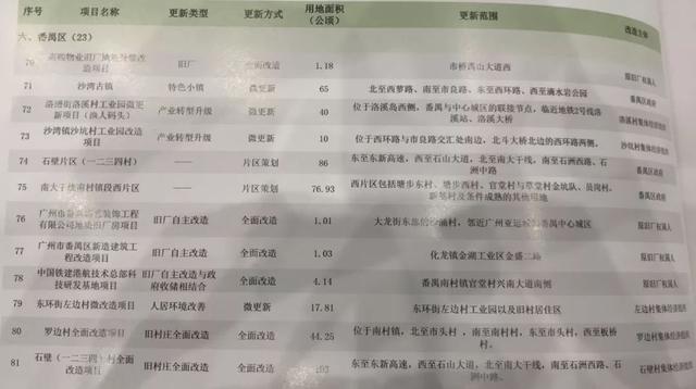 增城区:新塘官湖村、中新村全面改造,长岗村改造片区、瑶田村改造片区、白江村、群星村进行片区策划;