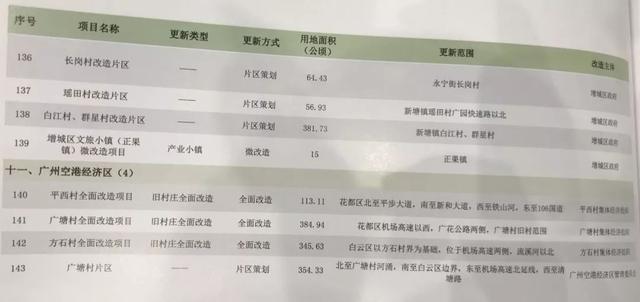 广州空港经济区:平西村、广塘村、方石村全面改造。