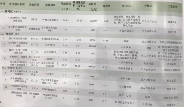 以下是城市更新项目资源基本情况表,比较值得关注的有: