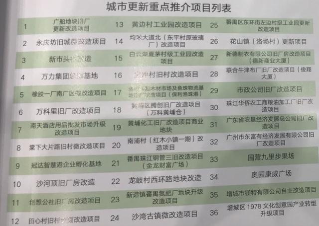据了解,本次推介会广州旧改重点推介项目共有69个,其中城市更新项目36个,产业载体项目33个。