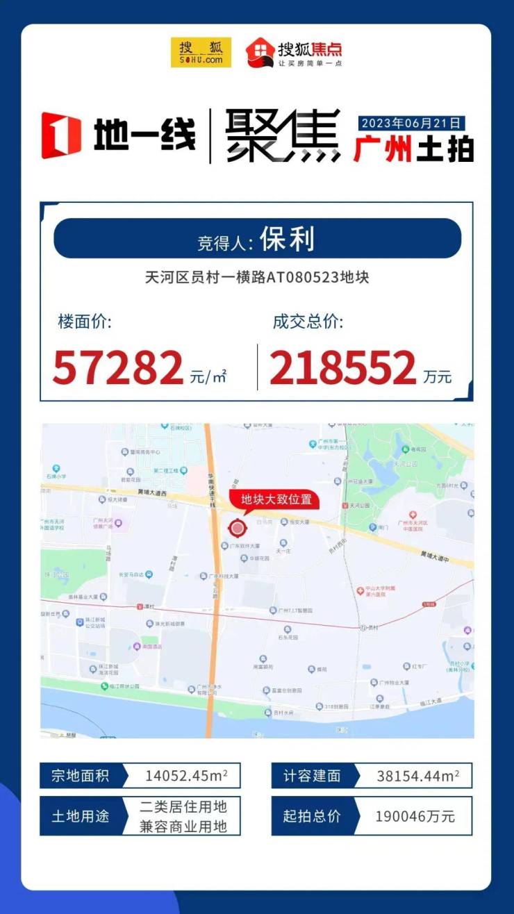 前不久刚成功出让的天河区员村一横路AT080523地块,看点十足,引来30余家企业争抢,最终还未等到正式开拍,就已提前封顶摇号,地块成交总价218552万元,折合楼面价57281元/㎡。