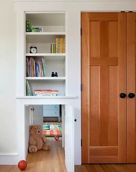 有不少的隐形门都是设置在收纳柜或者书柜后面,既兼具了功能性又达到想要的隐藏性。把门打开后,一个属于自己的私密空间得以展现。