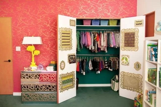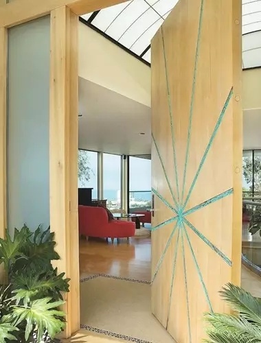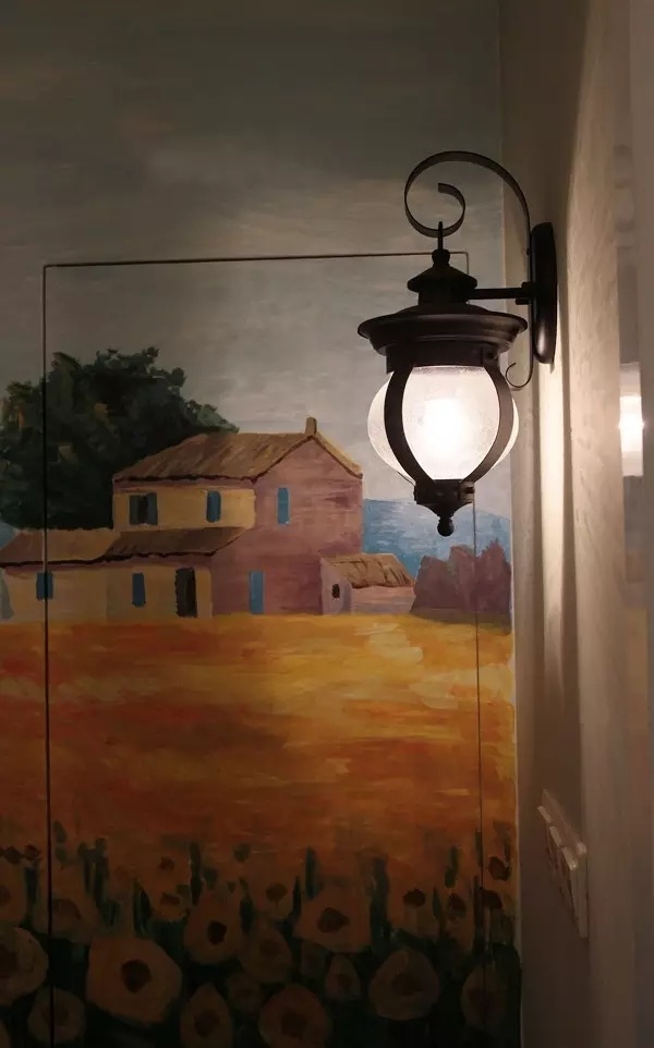 通过绘画、壁纸、油漆等将整面墙进行装饰,统一色调的花纹对于削弱门的存在感很奏效。