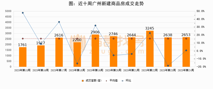 【广州成交周报】第24周新房成交2653套,涨价房源1套