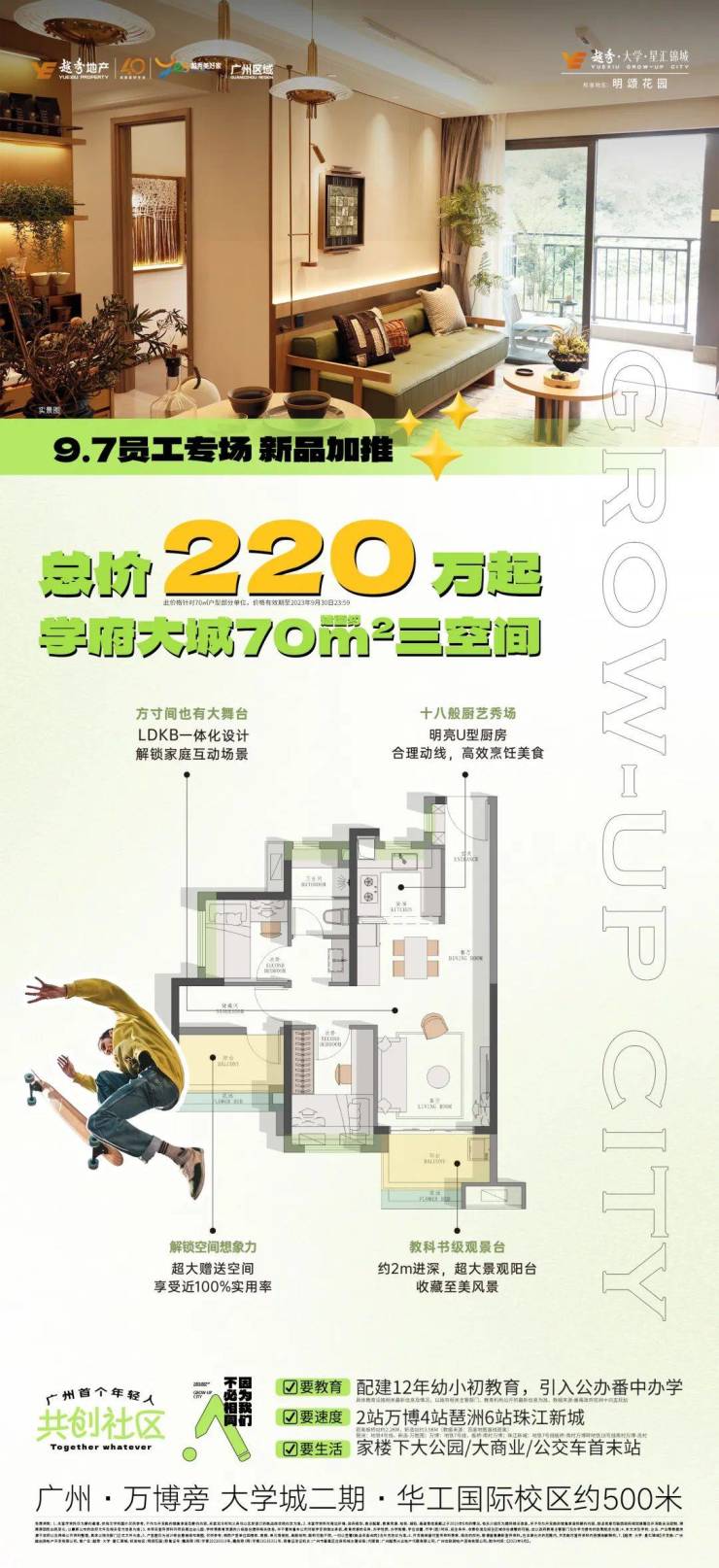 越秀·大学·星汇锦城推出建面约76-98㎡超高使用率三至四空间带主套,打造兼顾居住实用性、功能性及舒适性及家人互动生活,小空间也能实现大享法!