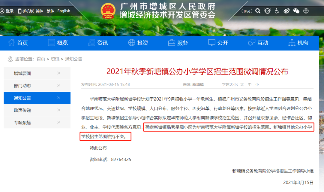 新塘官宣: 确定华师附属新塘学校学区为品秀星图,其他不变