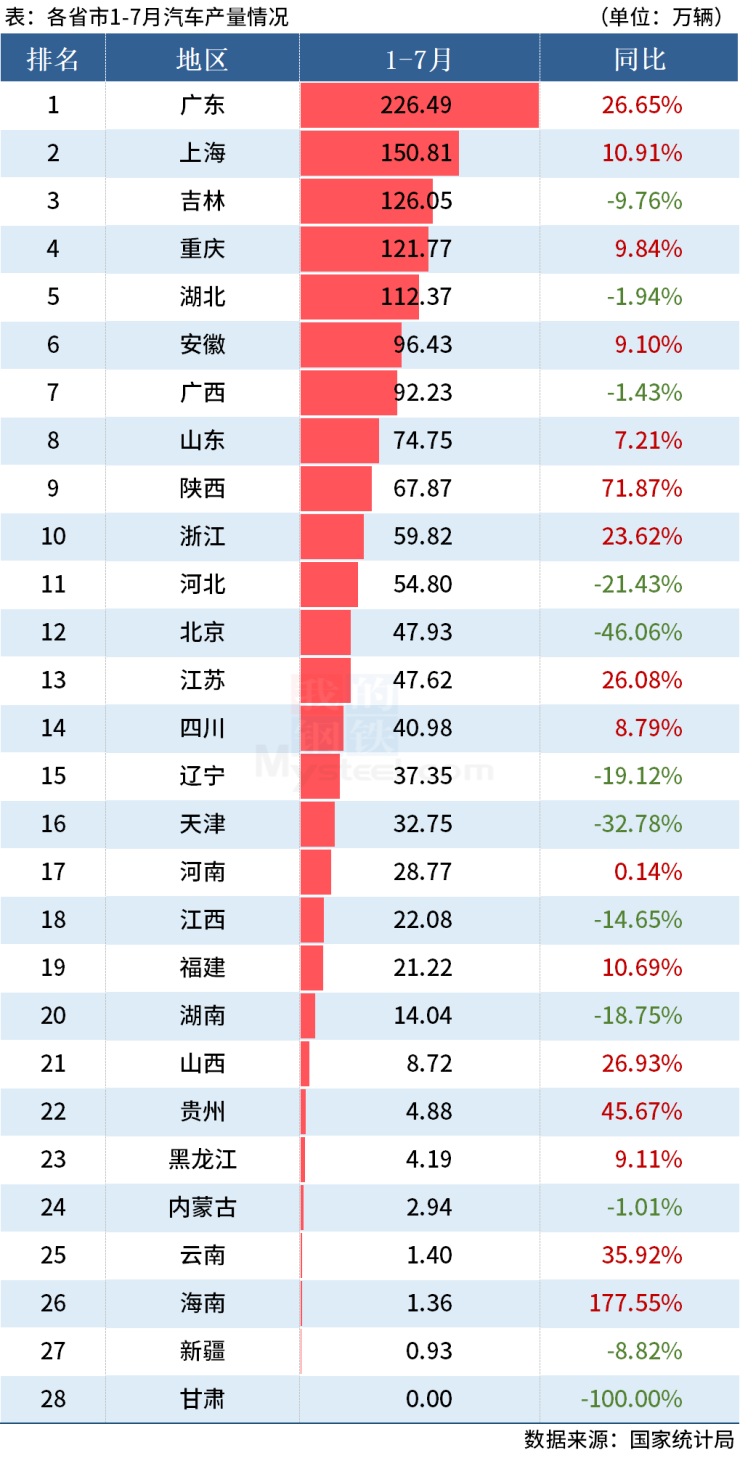 税务部门的数据显示,广东省汽车制造业在新能源汽车的带动下,延续5月份以来的向好态势,7月份汽车制造业销售开票金额同比增长44.7%,增速比6月份提高1.2个百分点。