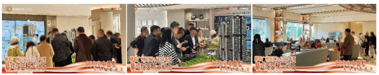 现场已逐渐充盈阖家愉悦的新春气氛,不少看房的客户利用春节期间小空挡,错峰出行,先过来买房再去旅游度假,更有曾经到访的香港客户直接“空中”转账线上认购。现场礼花四溢,成交业主与家人朋友分享着好运和欣喜,其乐融融。