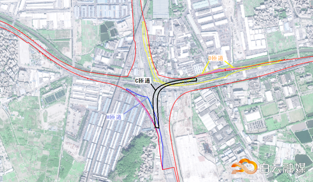 ▲ 广佛肇高速公路广州段二期工程C、D、H匝道位置图