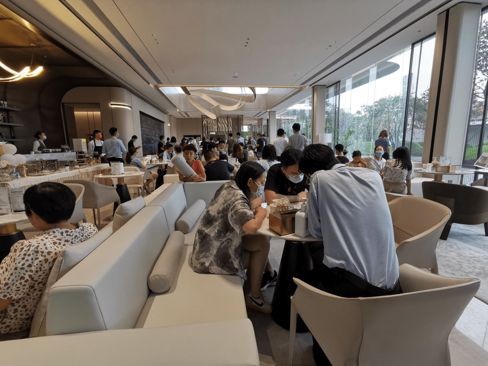 越秀滨江·星航TOD同是摇号地,距前者迟3个月拿地,楼面地价比前者只贵了112元/㎡。开放样板房时段,黄埔区下起大暴雨,但从现场看人气不错。现场也设“砸金蛋”环节,开始蓄客。