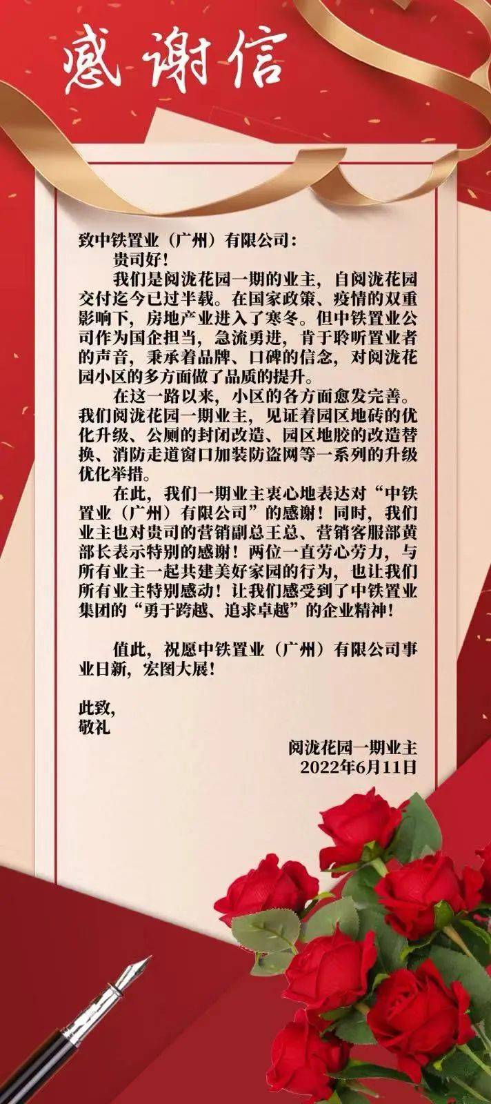真心总会收获真情,中铁诺德阅泷的“实干家”精神映入业主眼中。6月12日,项目一期的业主代表将锦旗与感谢信送至项目营销中心,足见业主对中铁诺德阅泷服务态度的认可。