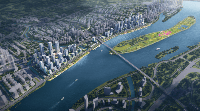 在金融城东区东南侧绿地新增一处码头(渡口),在北帝沙天河区界内新增一处渡口,建立两岸交通联系,突出北帝沙岛生态景观资源优势。