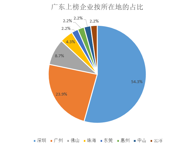 广东上榜企业按所在地分,深圳企业最多,占比超50%。