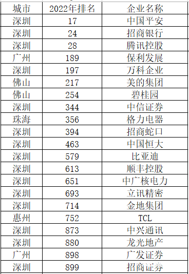 福布斯2022全球企业2000强广东榜单:共46家企业上榜,深圳最多。