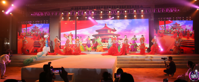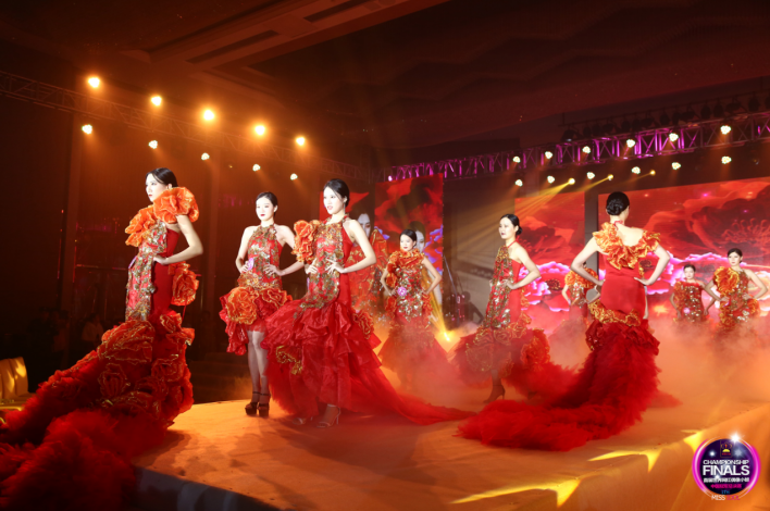 随着列夫主席开幕词的话音一落,瞬间音乐响起,大型创意艺术概念超模秀《中国红》和《我爱我的祖国》登台亮相,拉开了首届世界网红偶像小姐中国冠军总决赛的大幕!