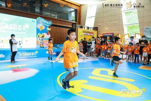 排名前列站:青少年跳绳比赛。这里是竞技赛场,也是业主秀场。来自25个项目70名小业主参与了赛事。随着裁判员的一声令下,只见一根根彩绳闪烁着光芒上下跳跃,共同开启爱越聚乐之旅。