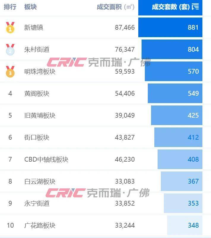 番禺以3670套二手房领先,海珠以3019套位列全市第二,增城以2795套位列第三。