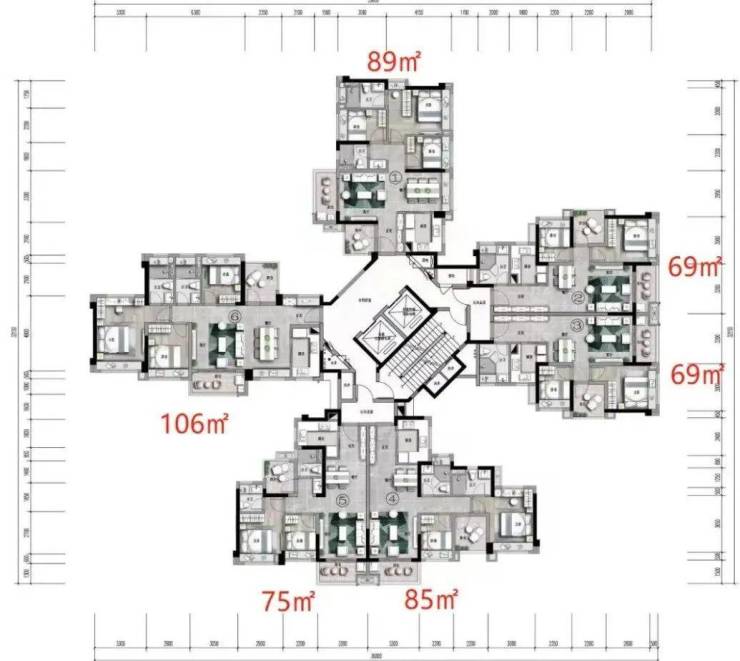 产品方面,本次开盘首推6#/7#/8#楼,户型也是比较有竞争力,分为69平3房,75平的3房2卫,89平的3+1房2卫,以及106平3+1房,空间利用率比较高。