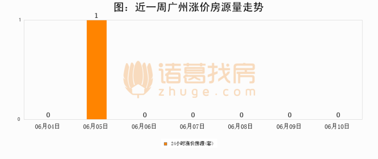 根据诸葛找房数据显示,广州24小时涨价房源量为0套,较06月09日持平。