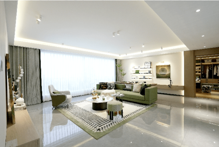 约225㎡样板间最为吸睛,首先映入眼帘的是视野宽阔的巨幕客厅,