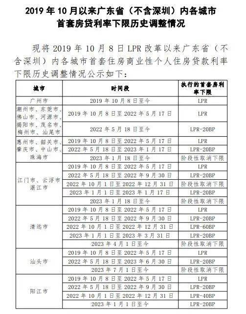 9月1日,广东已官宣各城市首套房贷利率下限历史调整情况。但,最低可以降到多少,不等于你就可以降到多少,大家最终的利率调整结果需看所属银行具体操作。