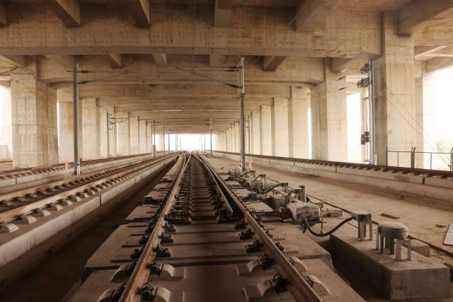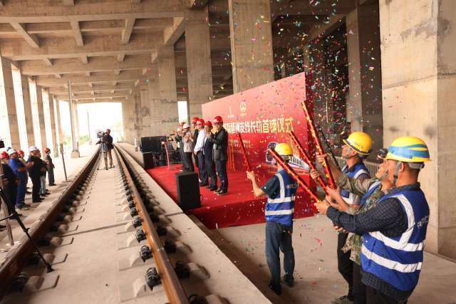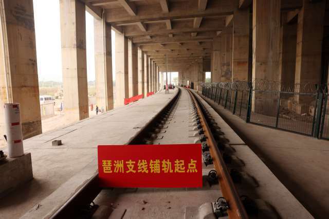 12月14日,在珠三角城际琶洲支线(下称“琶洲支线”)莲花站,琶洲支线首对500米长钢轨成功在混凝土道床板上铺设,琶洲支线正式进入铺轨阶段,向“轨通”节点目标冲刺。
