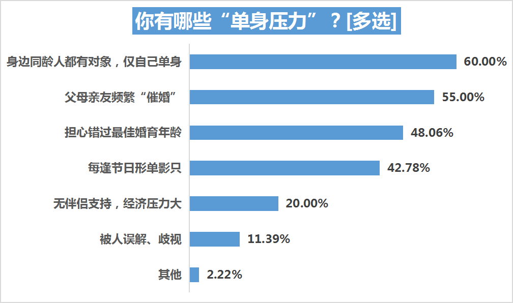 过半单身受访者有单身压力,亲友催婚是重要原因
