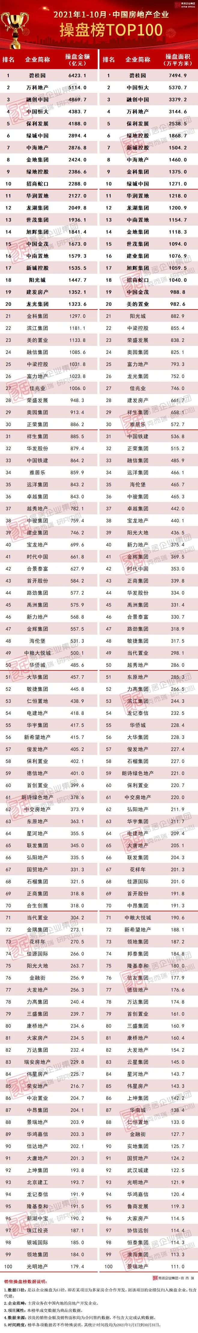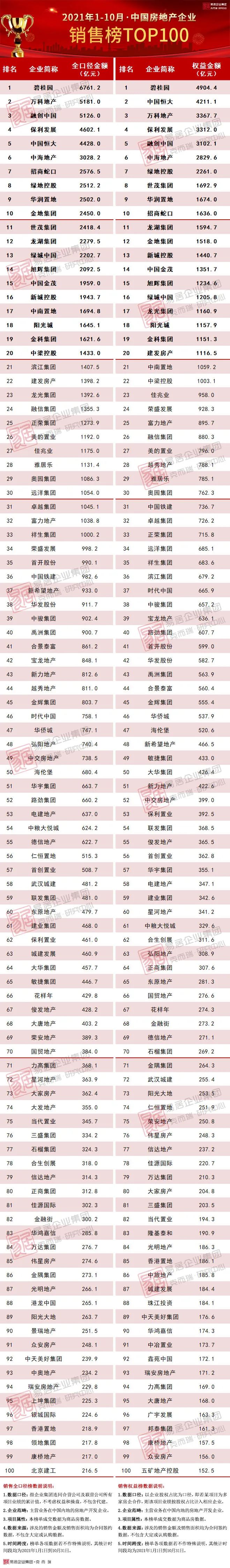 具体从企业表现来看,2021年10月百强房企中逾8成企业单月业绩同比降低,其中44家房企同比降幅大于30%。同时,包括绝大部分TOP30房企在内,有近8成企业单月业绩不及上半年月均水平。整体来看,10月房企单月业绩表现不及上半年及历史同期,同环比双降的百强房企数量达37家。
