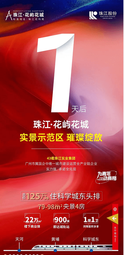 珠江花屿花城将于明日(5.1)开放实景示范区,主推79-98㎡四房户型,总价125万起。