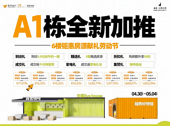 项目已于今日正式开放营销中心,其中4.30-5.2项目还有抽盲盒惊喜哦。