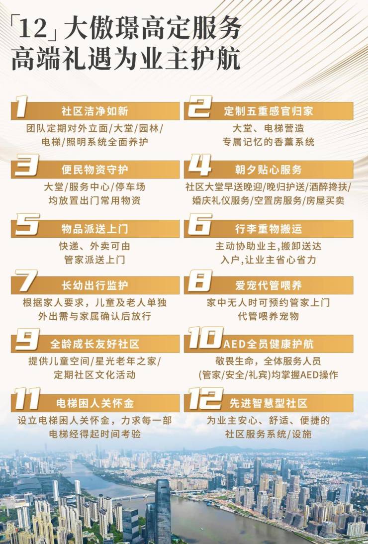 其次,傲璟不仅在产品设计上追求极致,更在服务上树立了全新的标杆。项目引入了星级酒店式服务,为业主提供一系列前所未有的尊享体验。具象勾勒出了广州买家追求的高品质生活基调。