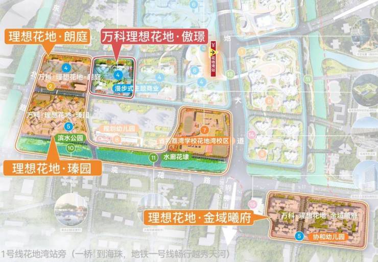另外,理想花地规划的幼儿园、中心公园、漫步式主题商业、滨水公园;还有投用中的广州医科大学附属第一医院花地湾院区、花地湾公园也都在傲璟附近。