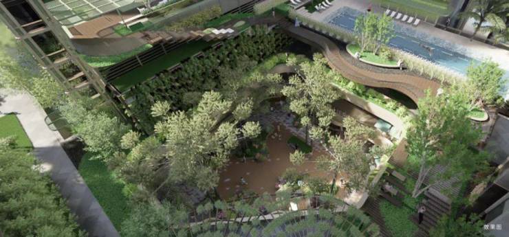 傲璟打破了传统住宅的单一功能布局,通过创新空间场景,在社区内形成一个多元化的“广州首座立体植物园社区”。