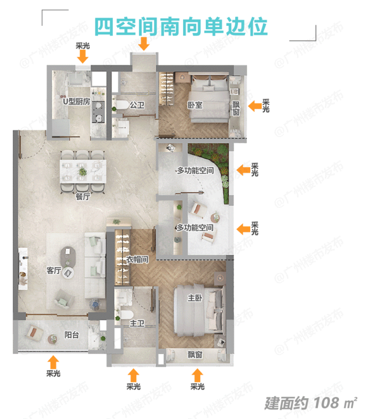 霸气的空间布局,每一户都是全南向,加上南北对流,打破广州人的居住痛点。