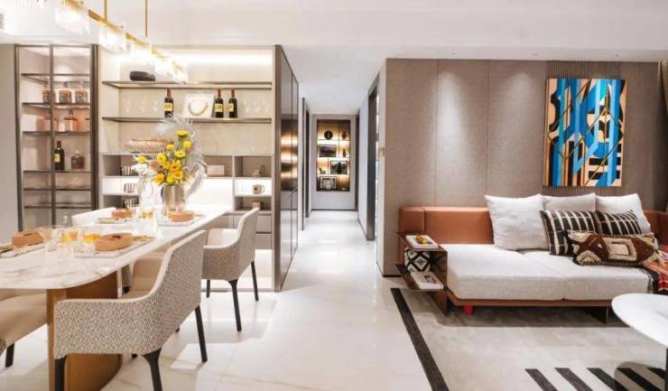 目前,项目主推建面约88-245㎡胜景平层/大主卧套叠墅。其中,建面约113㎡超大主套叠墅,双层空间设计,使用率高达约146%,远超许多新规产品。首层客餐厨一体化布局,空间更为阔绰,无论是举办家庭聚会,还是朋友派对,不显丝毫拥挤。而且,当人在阳台眺望,长隆万博CBD的繁华盛景与长隆旅游度假区的葱茏绿意跃然眼前,勾勒出生活至臻品质。