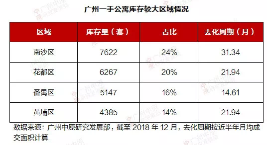 截至2018年12月中数据,广州一手公寓物业去化周期已上升293%至19.87个月,升幅接近3倍。