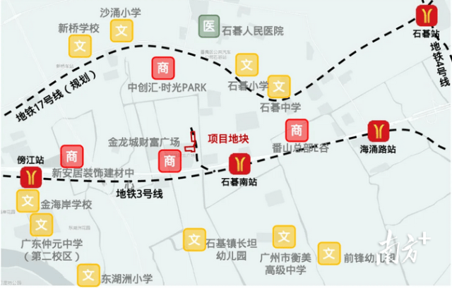 该地块毗邻番禺区政府及地铁3号线东延段,规划建设九年制学校,填补周边教育资源缺口,将通过多元功能开发加速产城融合,为破解超大城市空间瓶颈提供创新样本。