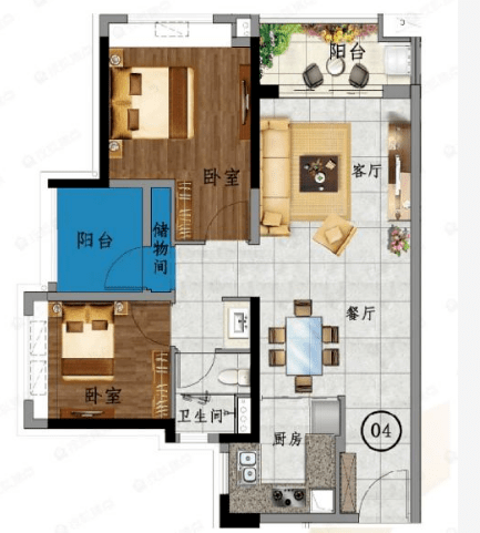 80平2+1房2厅1卫:中规中矩的布局,经典竖厅,餐客厅一体,分区科学合理,入户玄关设计合理收纳物件,不过此户型为西北向,追求南向的可忽视。
