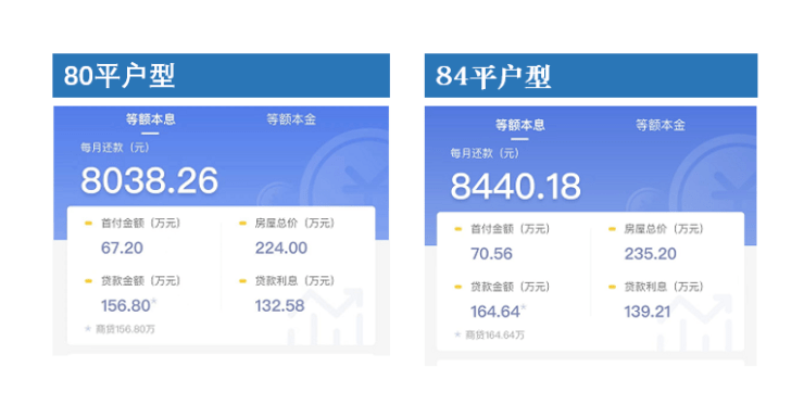 项目在售产品有78-134㎡两至四室,105㎡复式四室,均价约2.8-2.9w/平。其中80平和84房三房比较匹配需求。