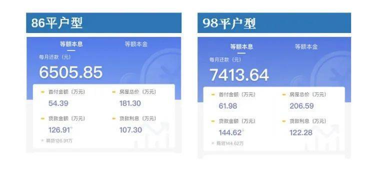 项目主推建面约76-105㎡三至四房,特价房2.6w/平可捡漏,其中85平户型总价约221万,首付70w以内可上车。