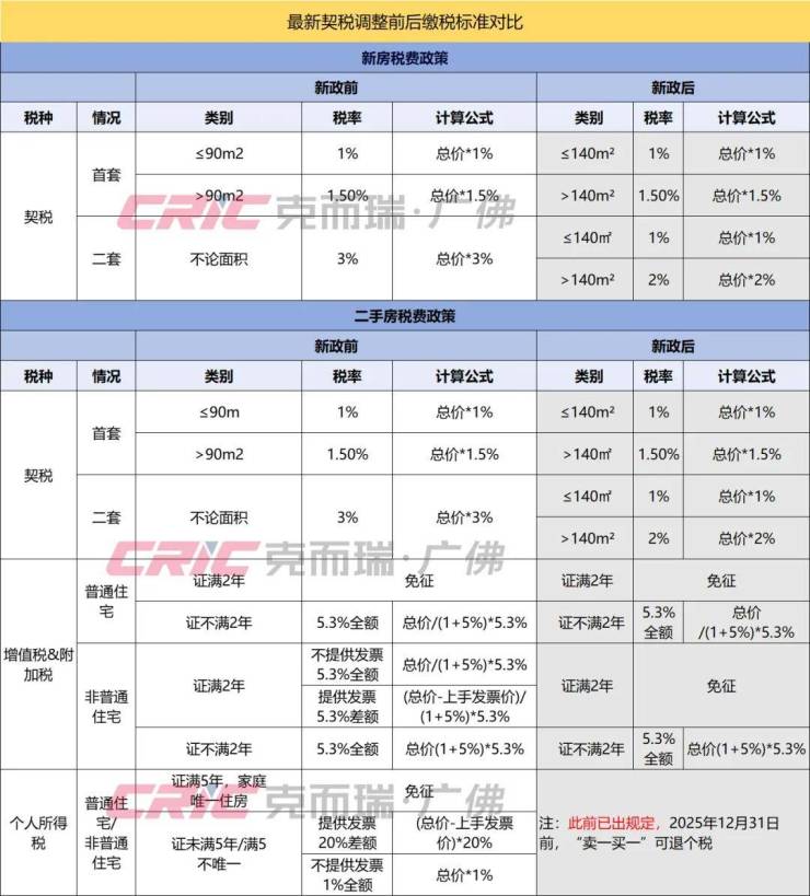 克而瑞列举了一张政策出台后契税缴纳变化明细,帮助大家更好的理解政策。