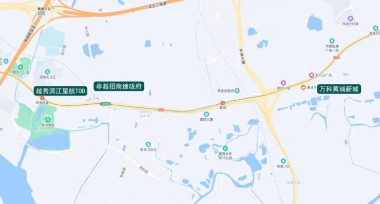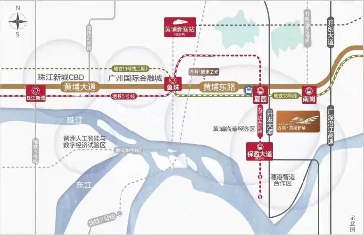 至于项目本身,其位于黄埔临港经济区,西临开发大道,东至南岗村,北侧则是广深公路。
