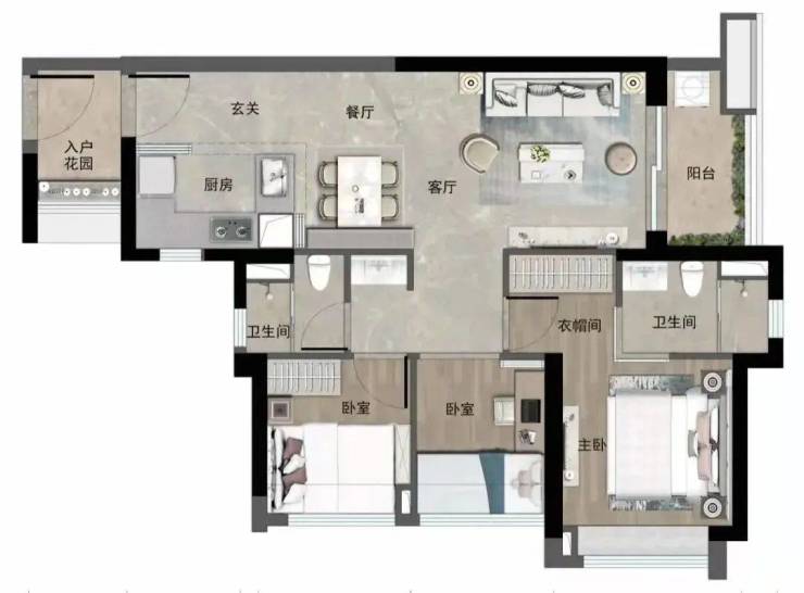 建面约93㎡三房