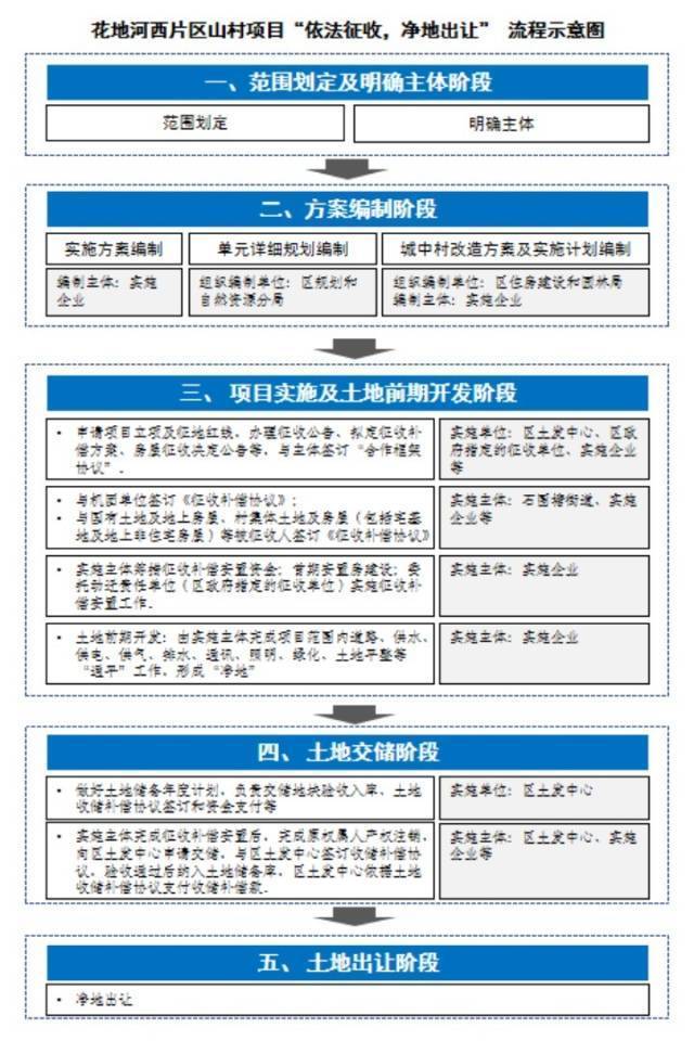 谋非常之策,用非常之力。依照“依法征收,净地出让”的根本原则,当前,荔湾区坚持政府主导、市场运作的“指挥部+项目公司”改造机制,探索细化新一轮城中村改造新模式实施全流程,从确定范围和主体、方案编制、项目实施土地开发、土地交储、土地出让5个阶段,进行了明确的工作分工,为全市城中村改造新模式的落地实施提供实践参考。