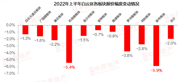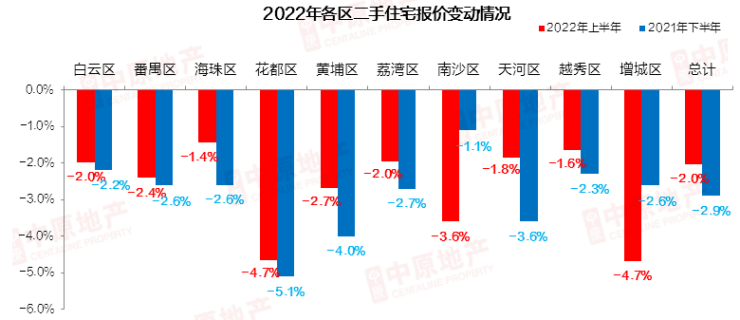 而外围增城、花都等刚需区域议价空间则较大,报价变动分别为4.7%、4.7%。