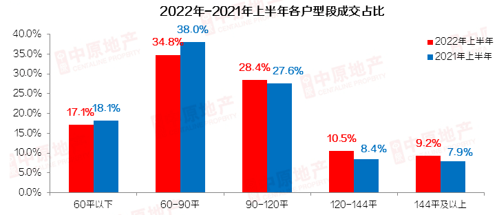 据监测显示,60-90平盘源成交占比仅34.8%,环比净减少2.2%。