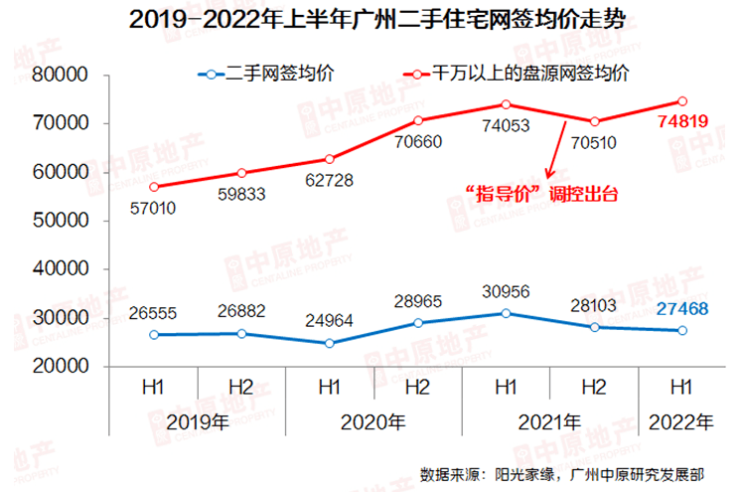 2022年上半年,广州二手住宅网签均价为27468元/平,较2021年下半年下跌2.2%,同比大跌11.2%。